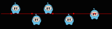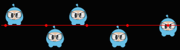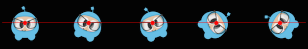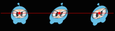 스프라이트[Sprite]의 위치는 앵커 포인트[Anchor Point]에 영향을 받습니다. 앵커 포인트[Anchor Point]가 위치를 지정할 때 사용되는 시작점이기 때문이죠. 이게 어떻게 적용되는지 직접 보시죠. 빨간 줄을 주목하세요, 그리고 스프라이트[Sprite]의 위치가 빨간 줄에서 어디에 놓이는지도 놓치지 마세요. 앵커 포인트[Anchor Point]를 바꾸면, 스프라이트[Sprite]의 위치도 바뀝니다. 그쵸? 앵커 포인트[Anchor Point] 값을 바꾼 것만으로도 이렇게 바뀐다는 것을 명심하세요. setPosition()을 사용하지 않고도 이런 결과를 얻었답니다: